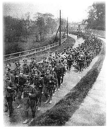 Soldiers marching up Bowcliffe Hill during the First World War.