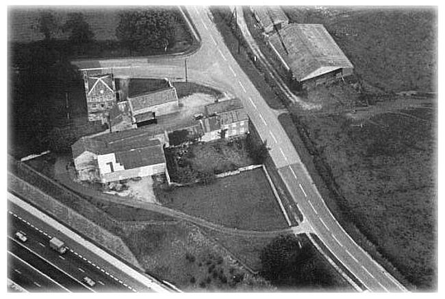 Two aerial views, one taken when the A1 went past it (top) and the other
