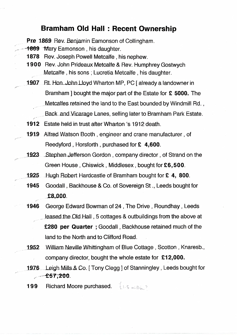 7. List of owners of The Old Hall from Rev Benjamin Eamanson pre 1869 to Richard Moore 199?