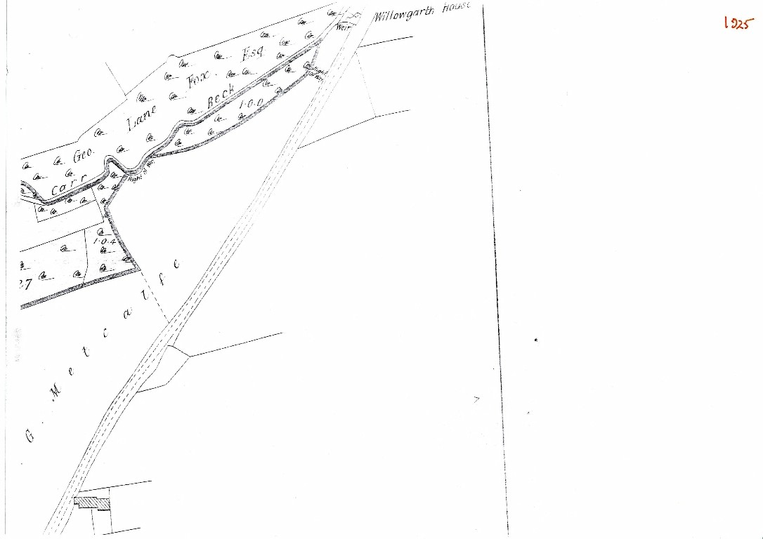 12. Plan showing top end of Estate with the beck and Willowgarth House 1925