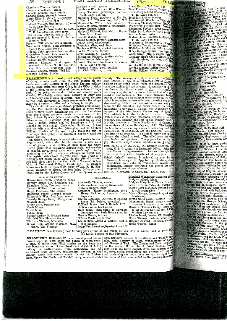 7. & 8. Pages 125 & 126 of the 1901 Directory covering the entry for Bramham