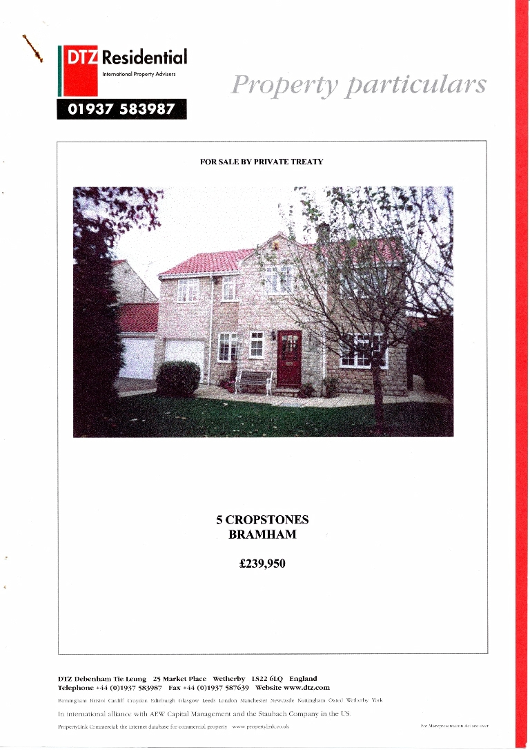 1. - 5. Sales brochure for a stone built detached 4 bedroomed house incorporating double garage, also with a stone period 2 storey barn providing scope for conversion into self contained annexe. Price £239,950.