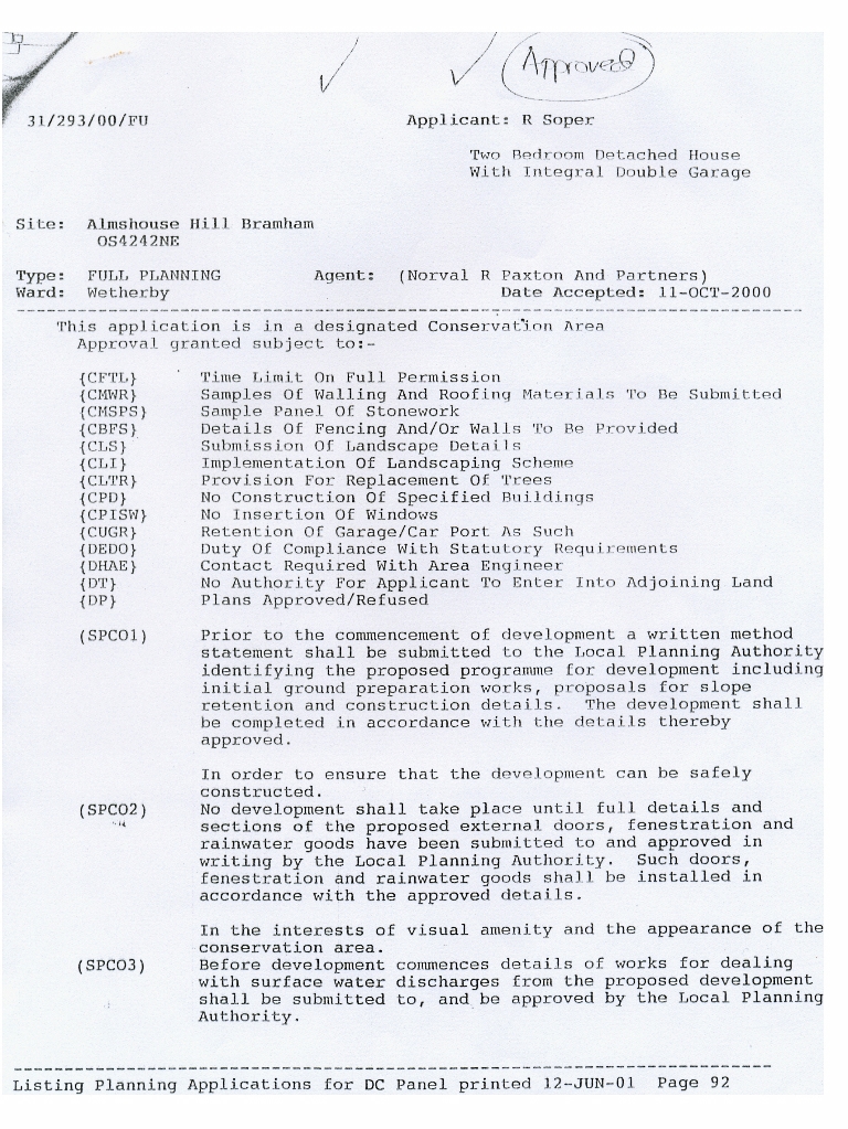 8. - 11. Agreement, with a list of conditions and comments, dated 11 October 2000, to a planning application for a 2 bedroom detached house to be built on the site.