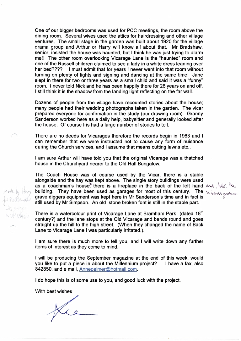 13. & 14. A letter dated 1999 from Anne Palmer, resident in The Old Vicarage, giving details of the history of the building.