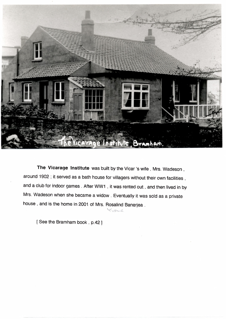 34. The Vicarage Institute, built about 1902 for use of the church congregation for recreation and as a bath house. It is now a private residence named Fiveways. An early photo is shown with a few lines on its history.