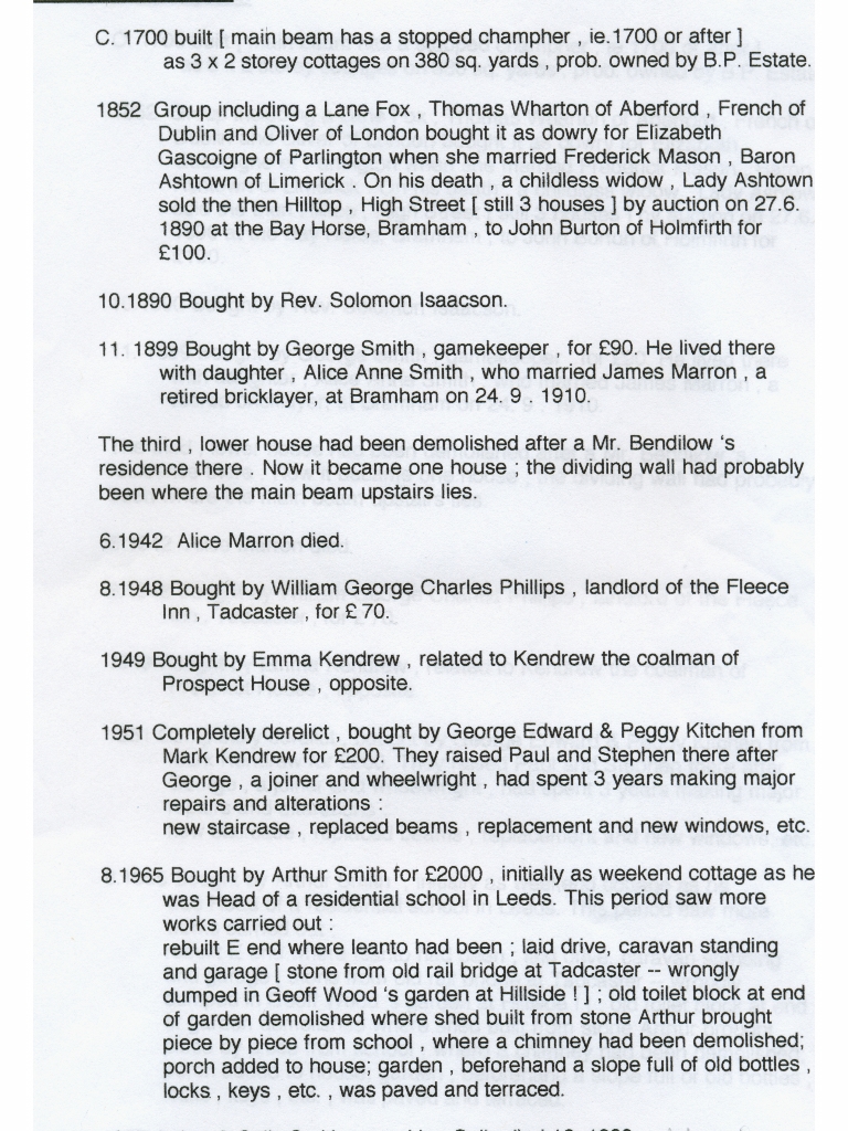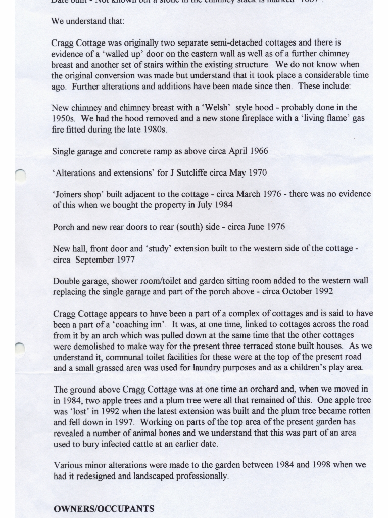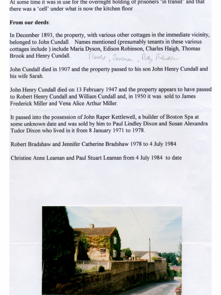 12. & 13. A two page write up by Paul and Christine Leaman on the many changes to The Cottage and its occupants since it was first built ( in 1667?) together with a photo of the building at the bottom of Item 13.