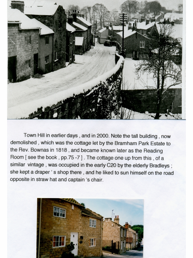 2. A black & white photo looking down the hill with a similar colour shot taken in 2000. A brief history is given of one building that no longer appears in the second picture.