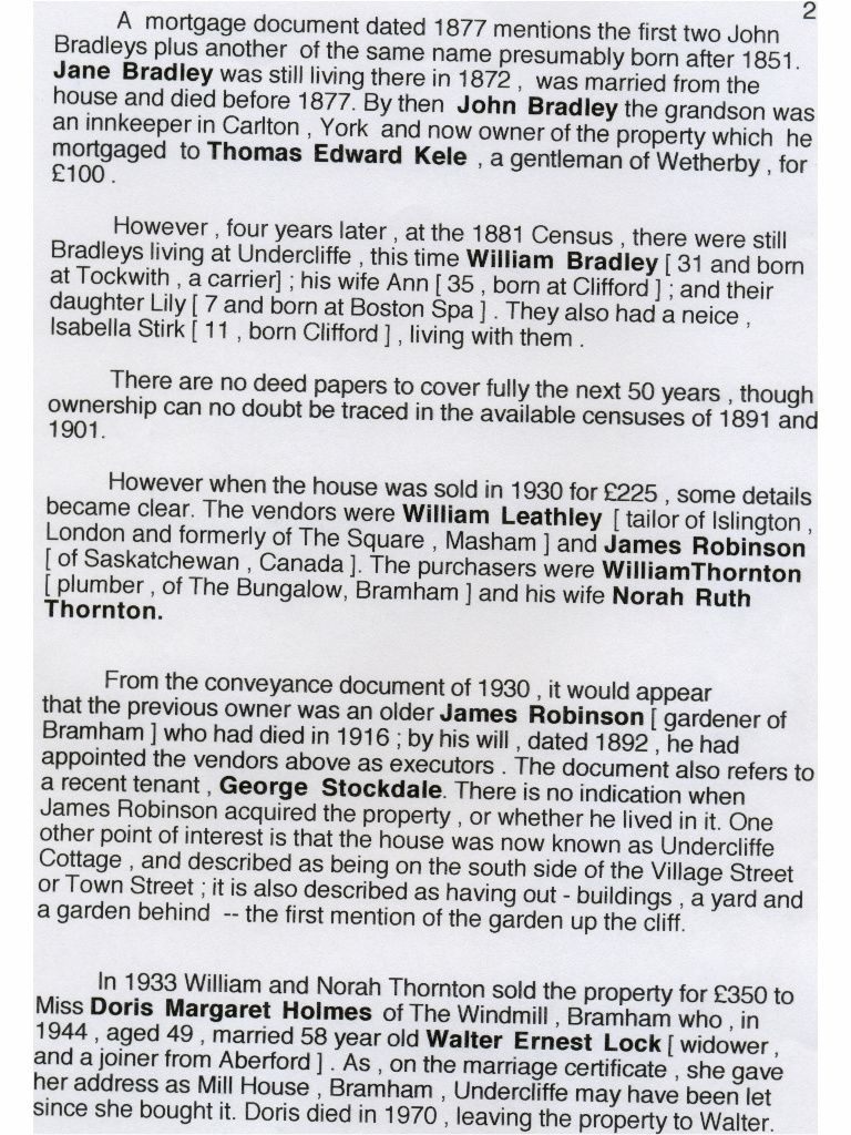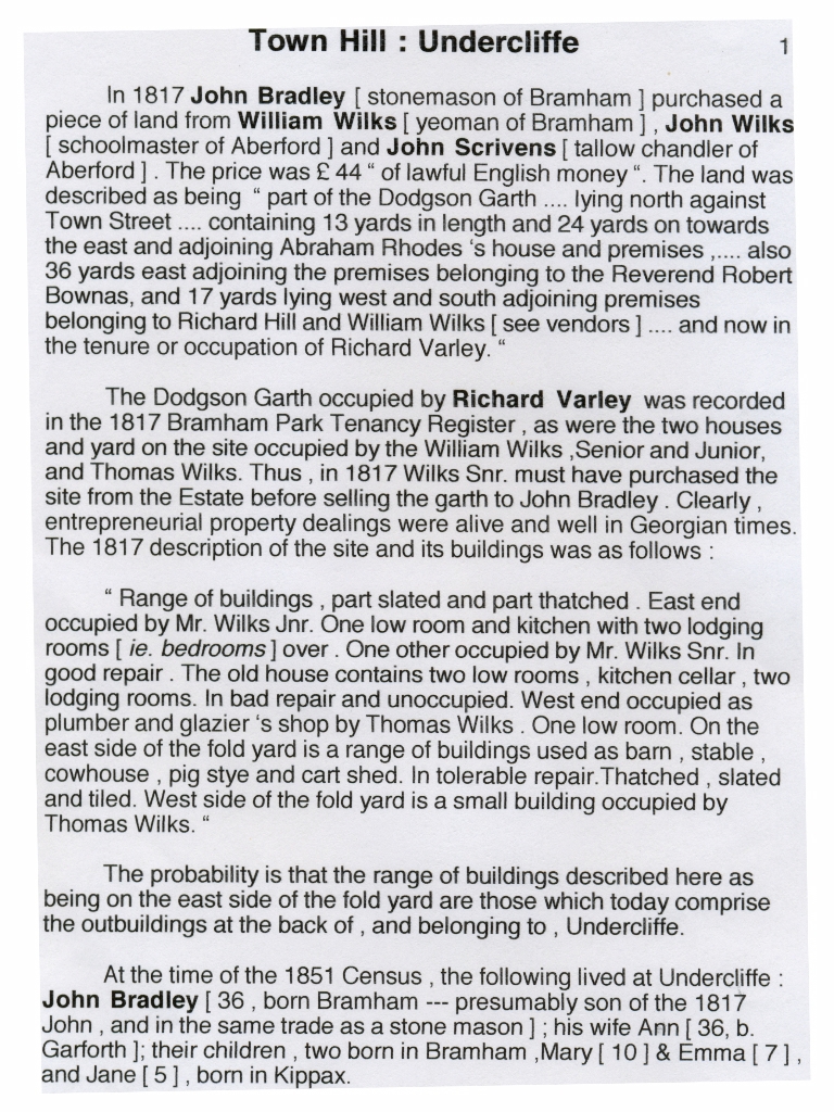 3. 4. & 5.A three page history of Undercliffe and its occupants from 1817 to 2000 with a colour photo of the house c. 2000 on the final page.