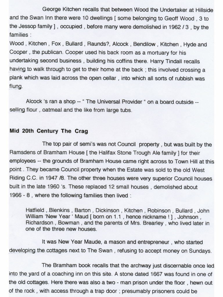 20. 21. & 22. Ground floor and first floor plans of The Swan before and after the modifications of 1928. Colour photo of The Cragg c.2000 looking down towards Town Hill. Also a photo of Westwood. |
