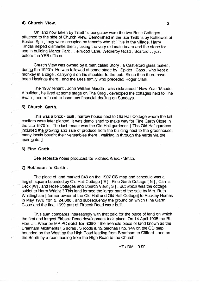 4, Church View; Church Garth; Fine Garth and Robinson's Garth. Article dated 1999 by ARC (Tony Cousens)