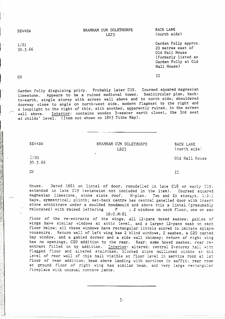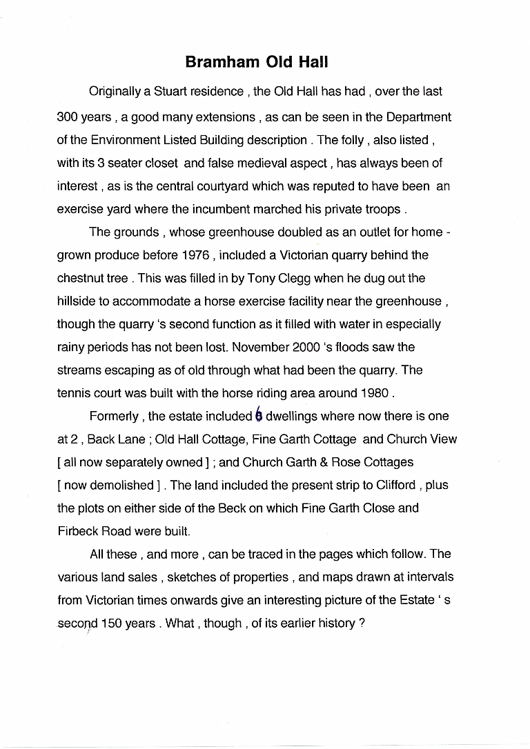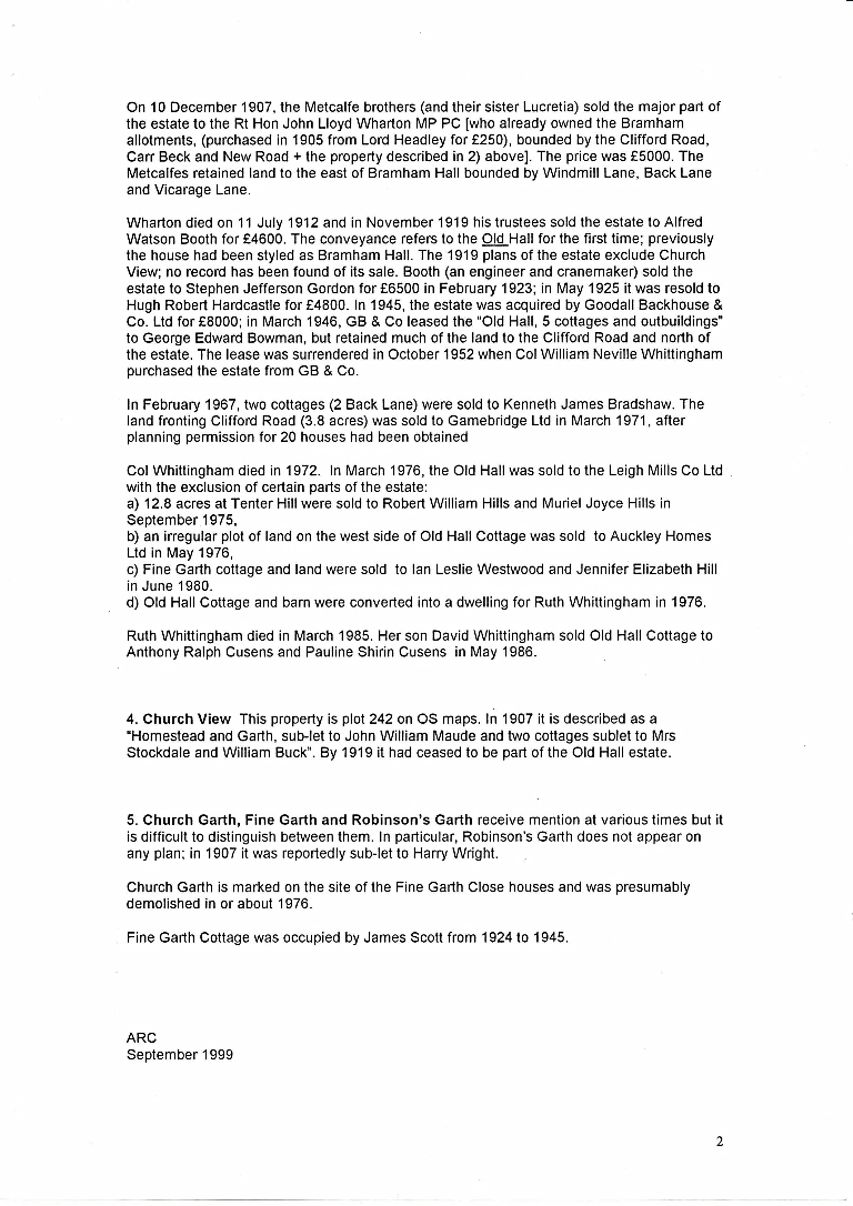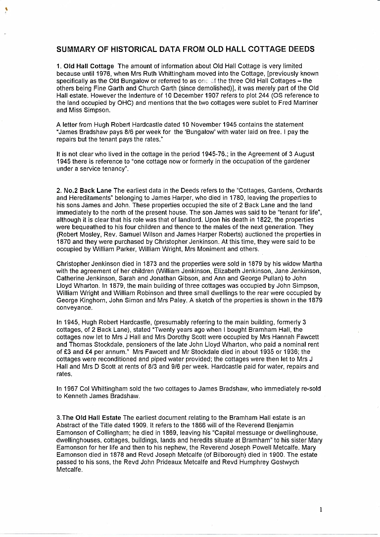 8. & 9. Summary of historical data from Old Hall Cottage Deeds. Refering to Old Hall Cottage; 2, Back Lane and The Old Hall Estate.