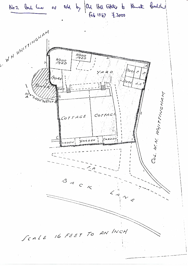 2. Plan cottage and yard 16ft to 1''. Purchased by Ken Bradshaw 1967 for £3000