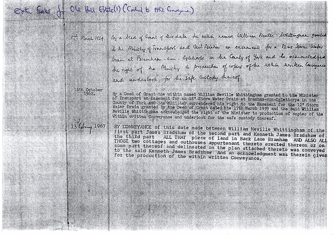 23/02/1967 conveyance 2 cottages Back Lane Whittington to Kenneth Bradshaw