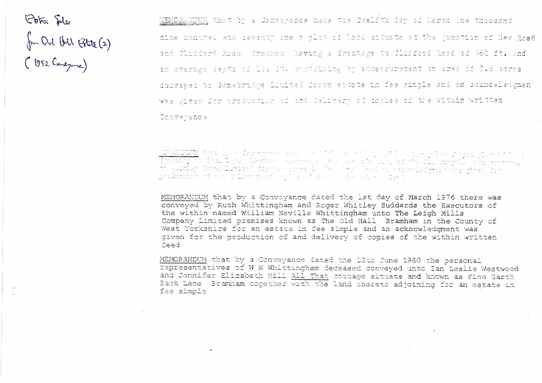 12/06/1980 Fine Garth Cottage to Ian Westwood and Jennifer Hill. £30,000