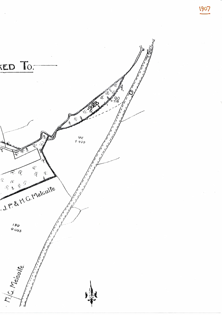 12. Plan showing top end of Estate with the beck and Willowgarth House 1925