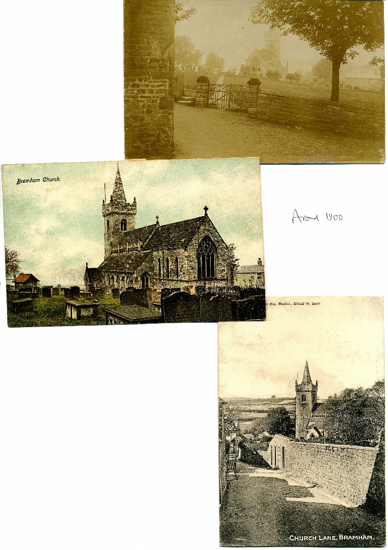 2. 3 photos, one looking at the Church from the gate on Back Lane/Vicarage Lane, one a postcard, looking at the Church and Lychgate from the graveyard and one from Church Lane over the wall opposite Primrose Cottage