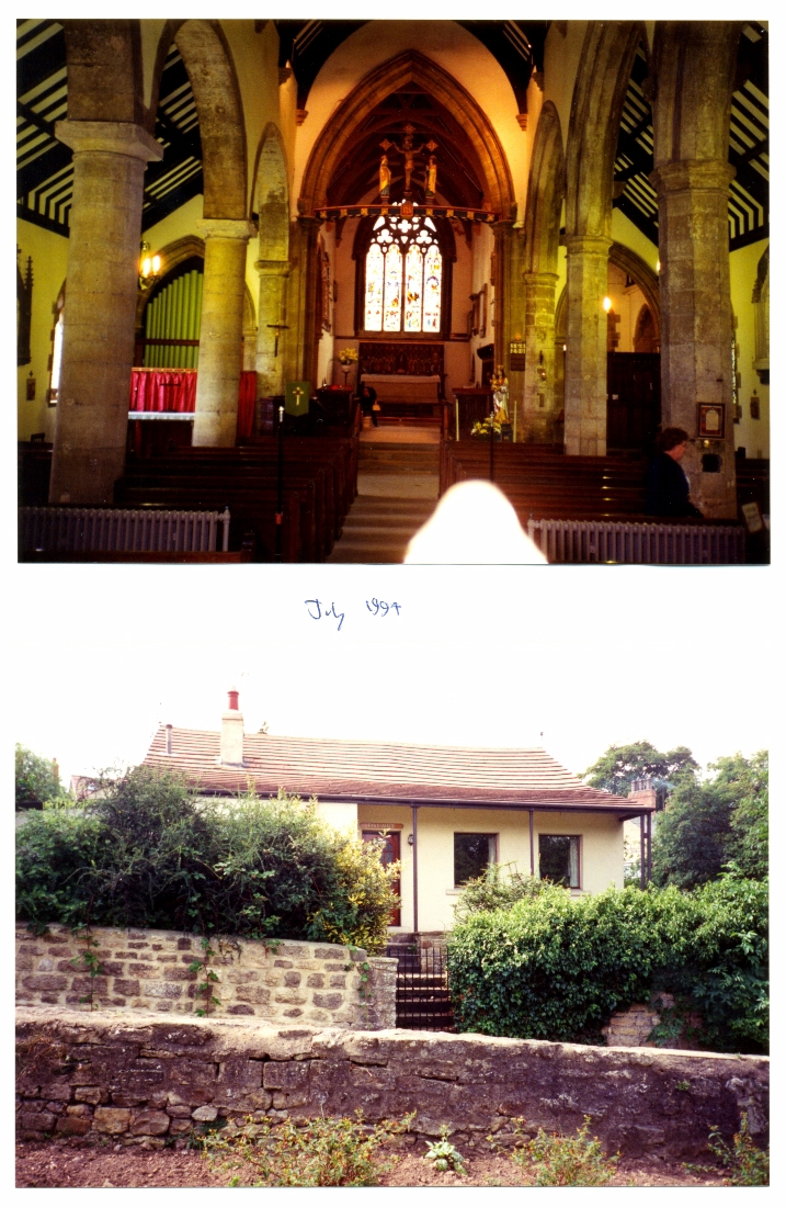 4. 2 photos (1994), one of church interior, one of Mrs Banerjee's bungalow corner Vicarage Lane and Church Hill.