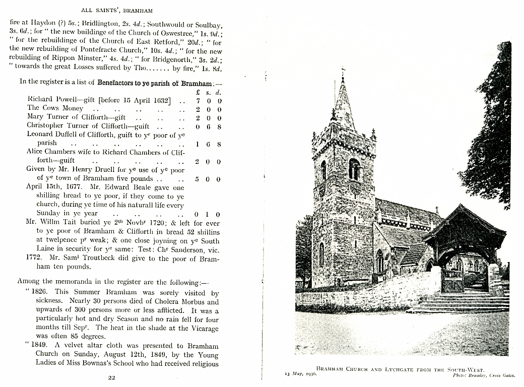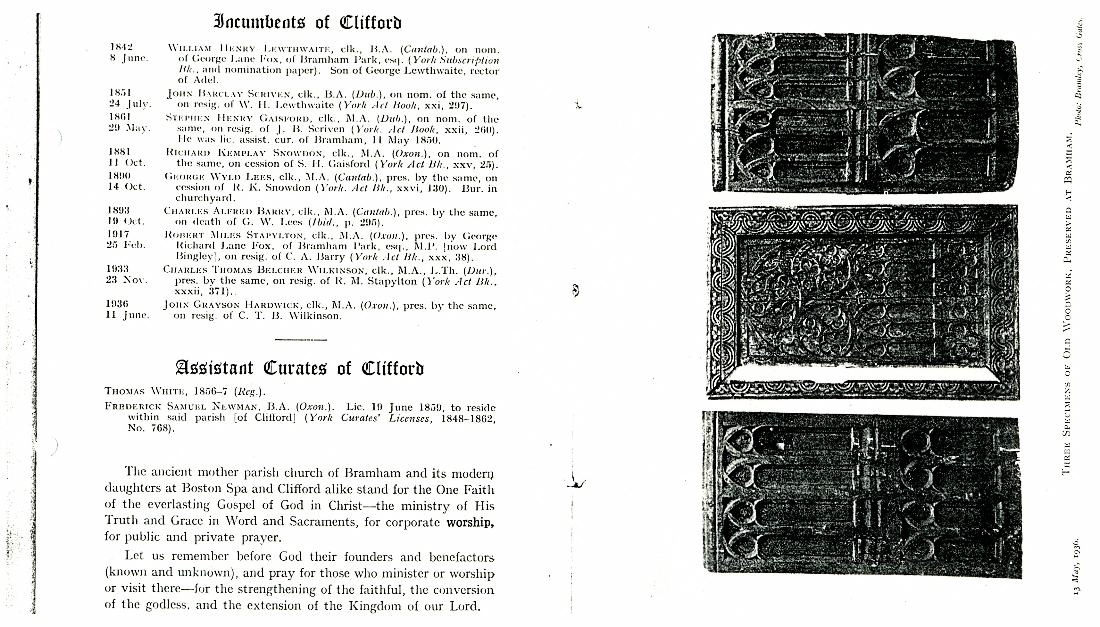 30. A photo of Bramham Church plate pus a photo of the exterior of St Mary's The Virgin, Boston Spa