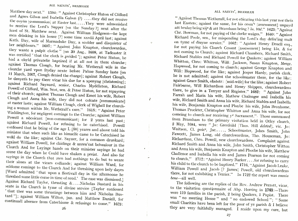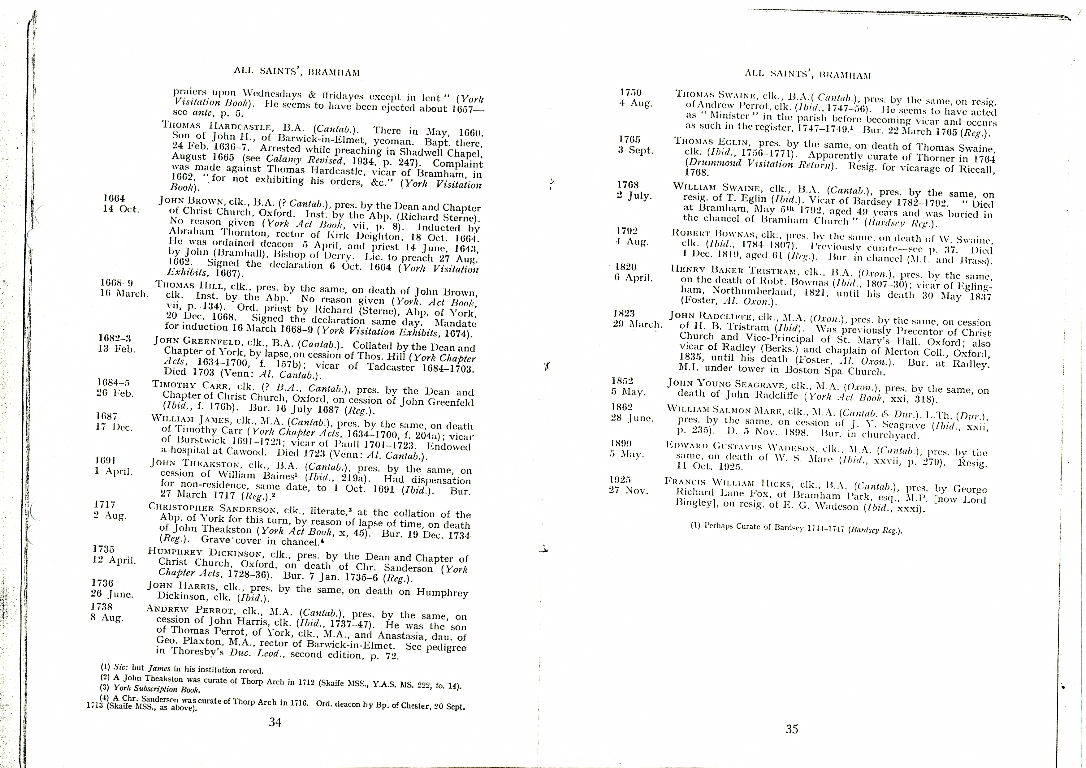 1. - 19. A history of All Saints Church by George E Kirk (Librarian to Yorkshire Archeological Society and Member of the Thoresby Society) written in 1936. It provides a detailed history of the Church with it's archeological features, memorials,plates and registers. Includes sketches and a list of incumbants, together with assistant clergy to 1936.