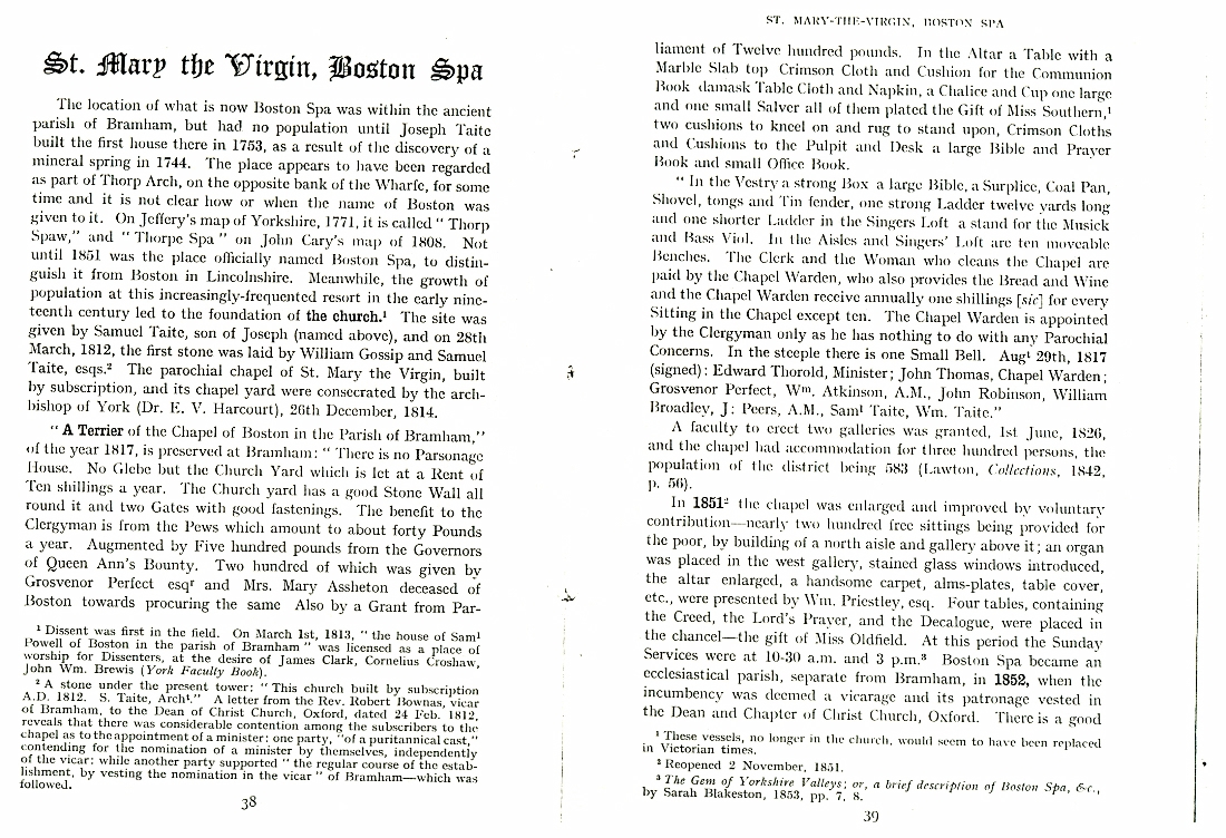 20. & 21. Brief history of St Mary the Virgin, Boston Spa
