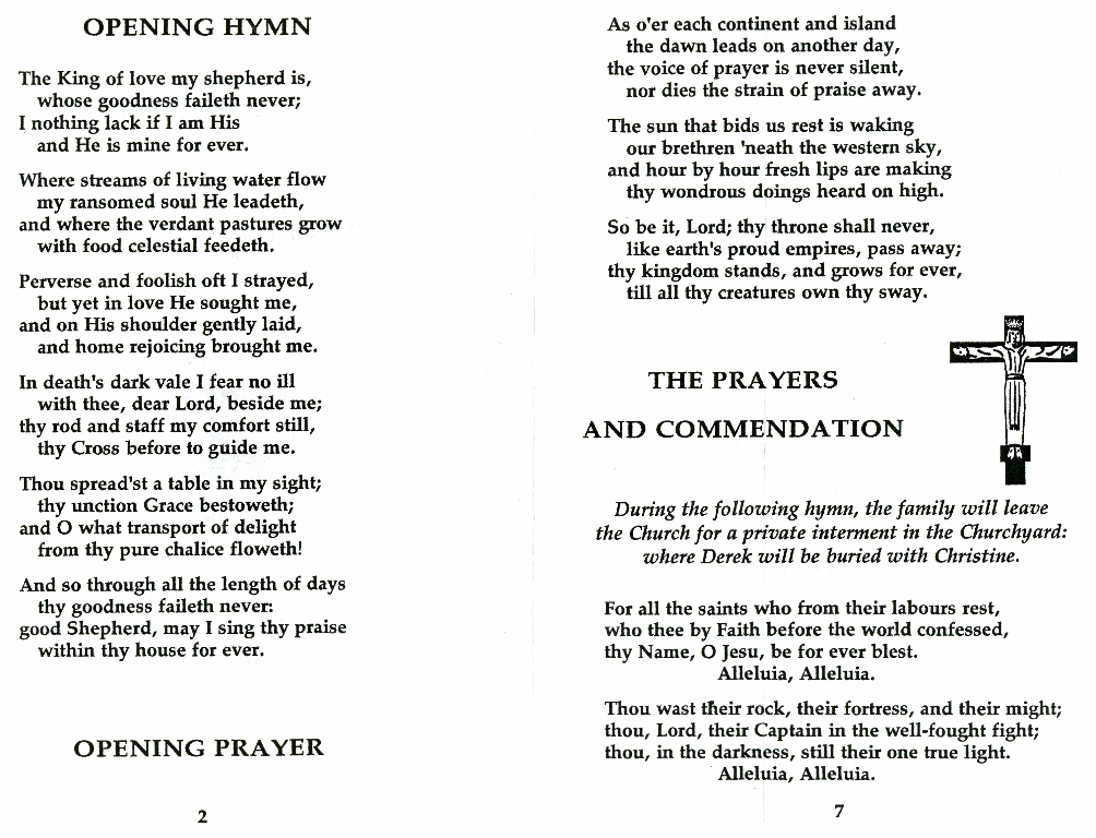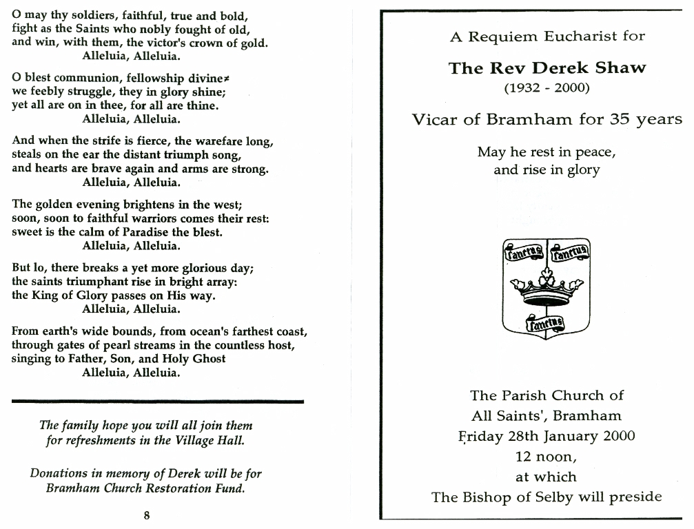 1. & 2. The service sheet for the eucharist for Derek Shaw, vicar for 35 years 28 Jan 2000