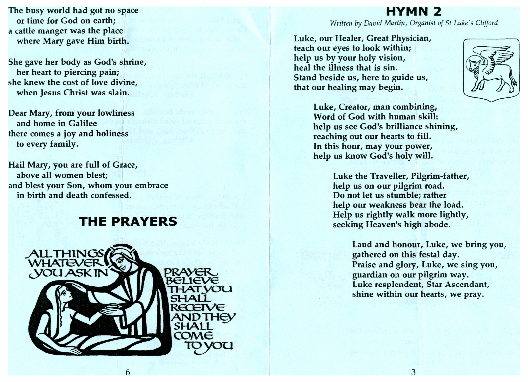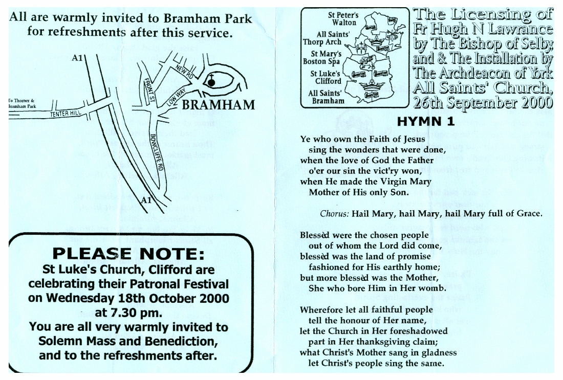 1. - 4. Order of service re the licencing of Father Hugh Lawrence the new encumbant of Bramham 26th Sept 2000