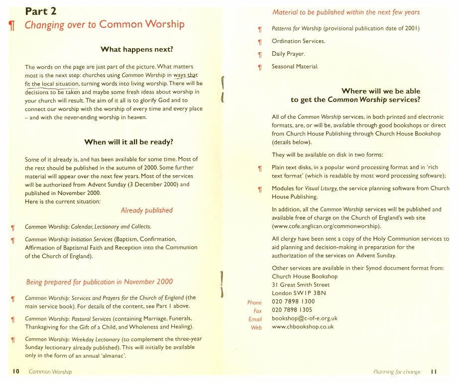 1. Pamphlet regarding Common Worship in the Church of England from 2000