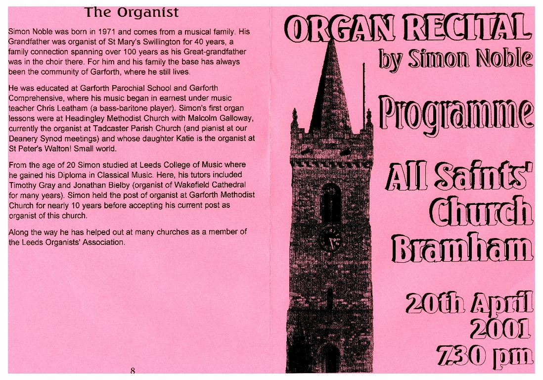 1. - 4. Program of organ rectital by Simon Noble in the Church 20 April 2001