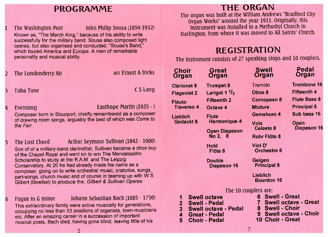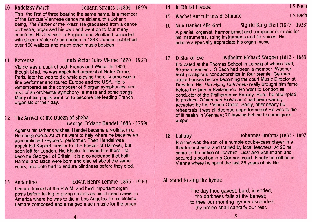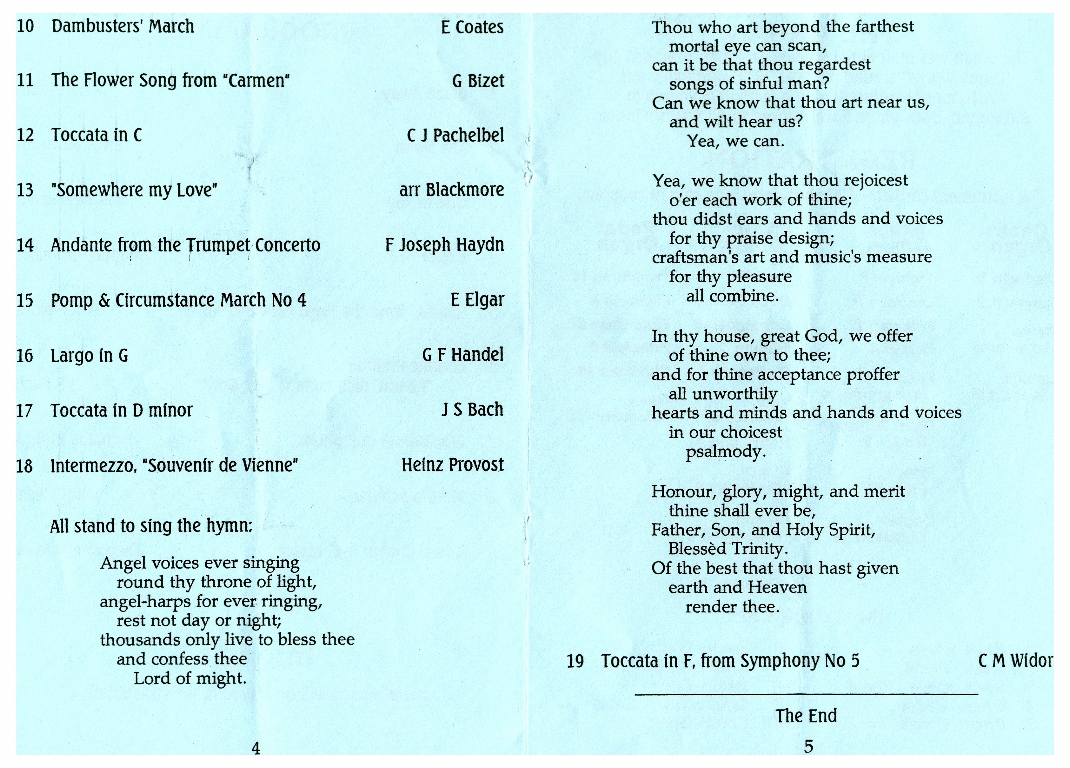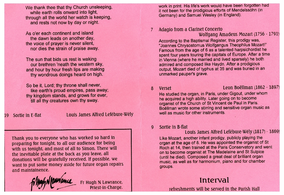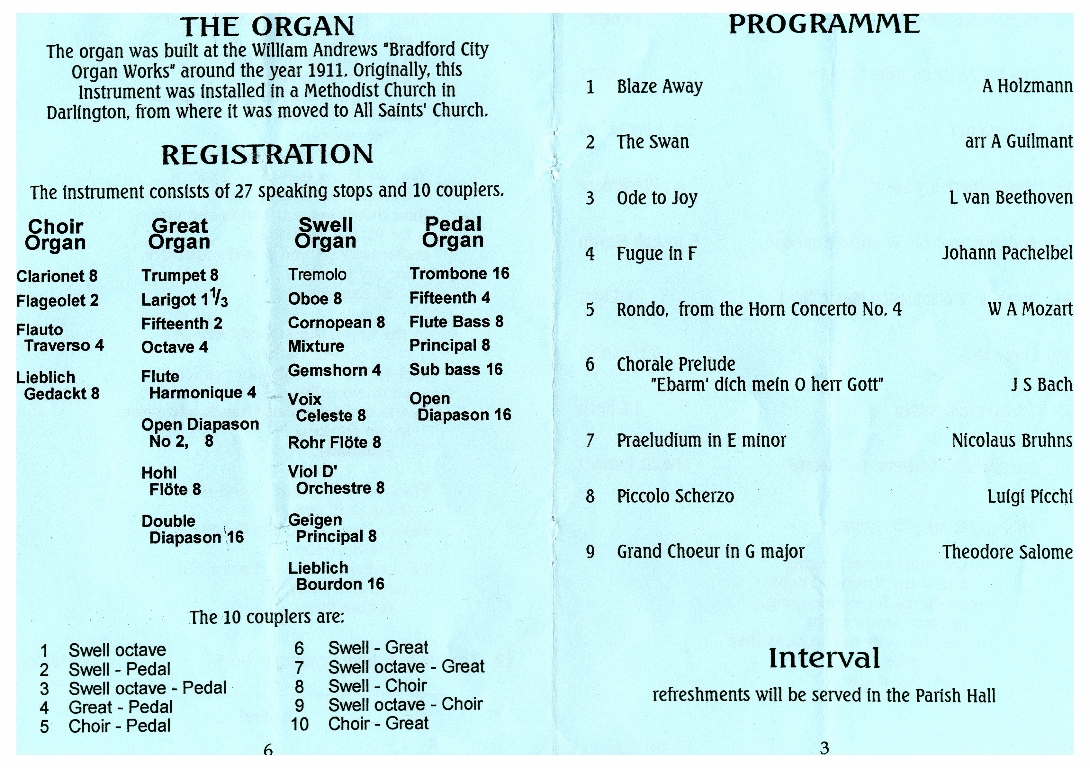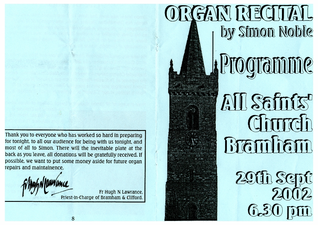 5. - 8. Program of organ rectital by Simon Noble in the Church 29 Sept 2002