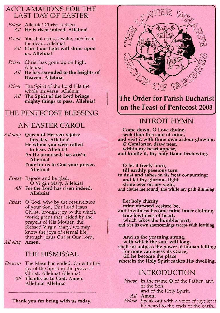 1. Order of service for the Parish Eucharist on the Feast of Pentecost, last day of Easter 2003