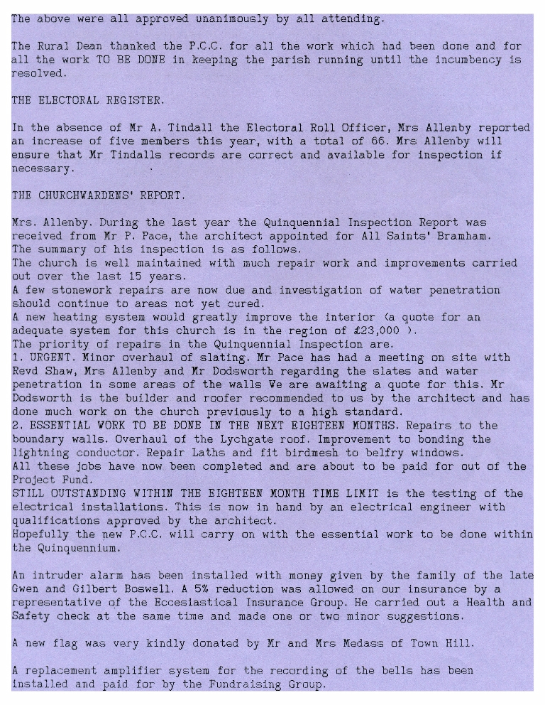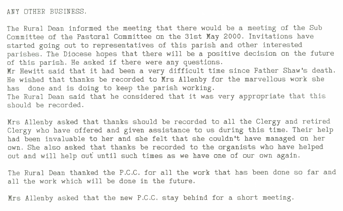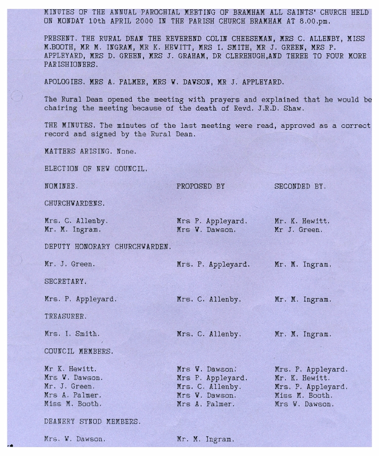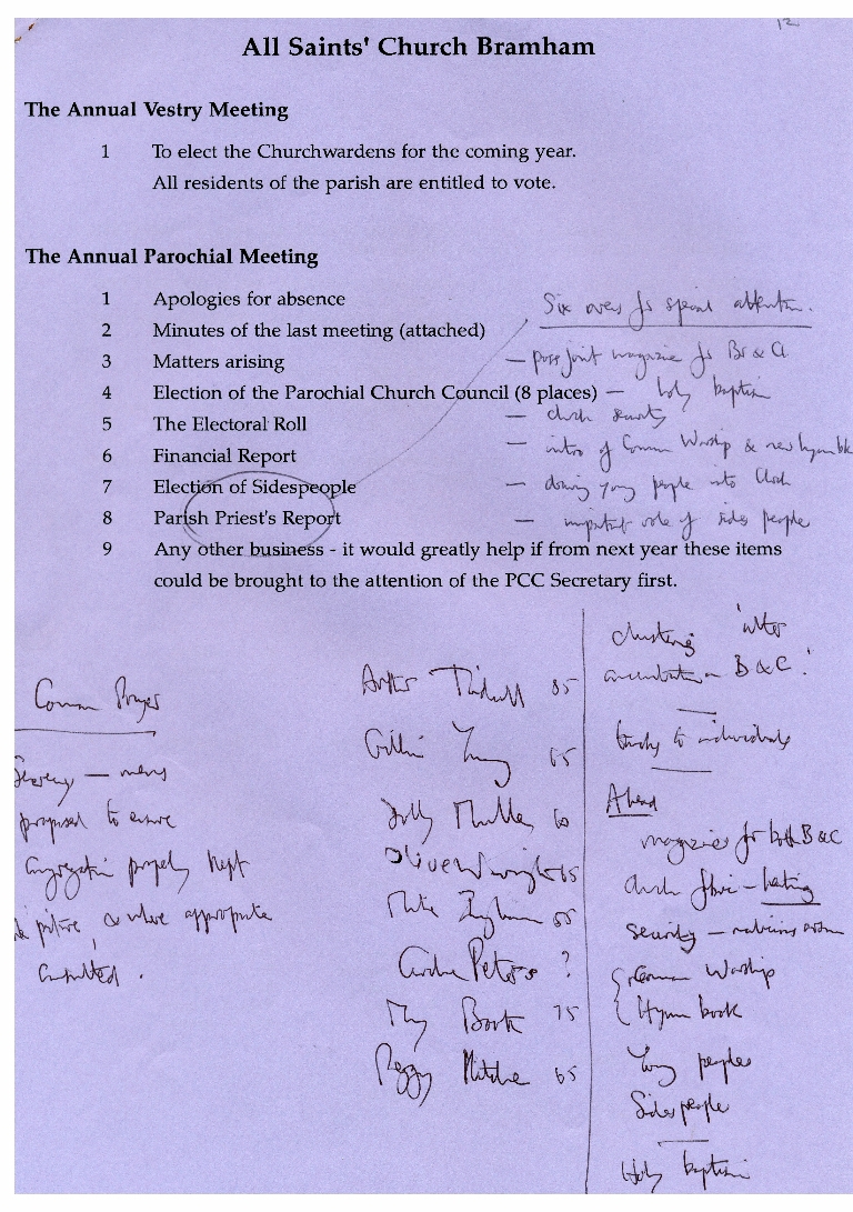 1. - 6. Agenda annual vestry and parochial church council meeting 2001, together with minutes of the meeting 10th April 2000