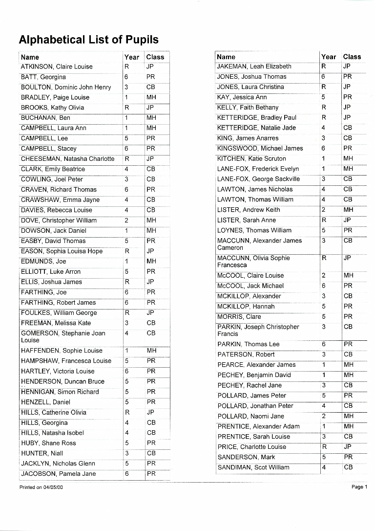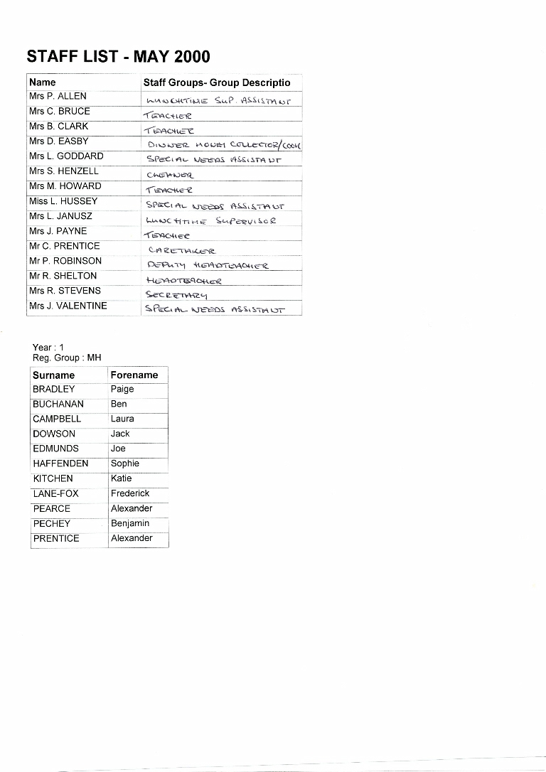 1. 2. & 3. Leaflet re Bramham School in the Year 2000.
