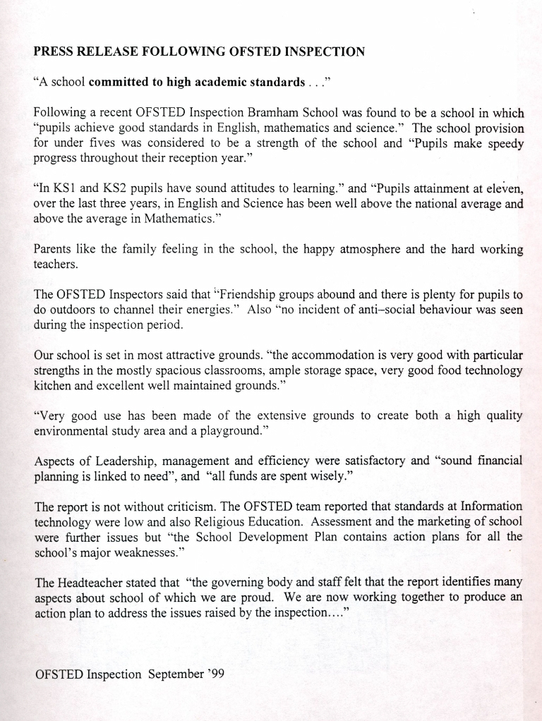 Description of 14-E Bramham Primary School Prospectus 2000