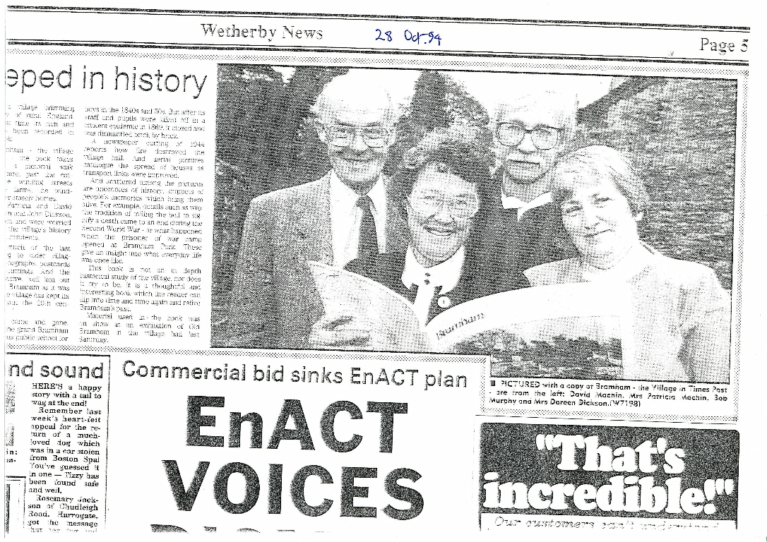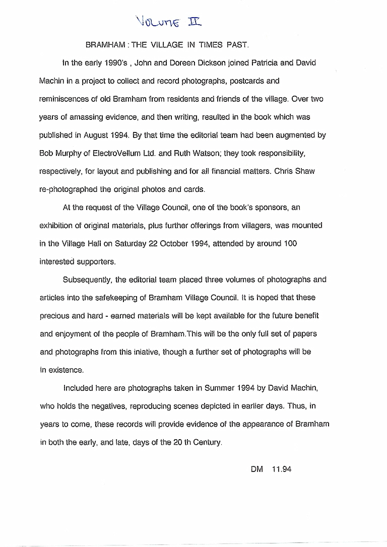 1. A one page summary dated November 1994 written by David Machin on the origins of the book "Bramham - The Village in Times Past"