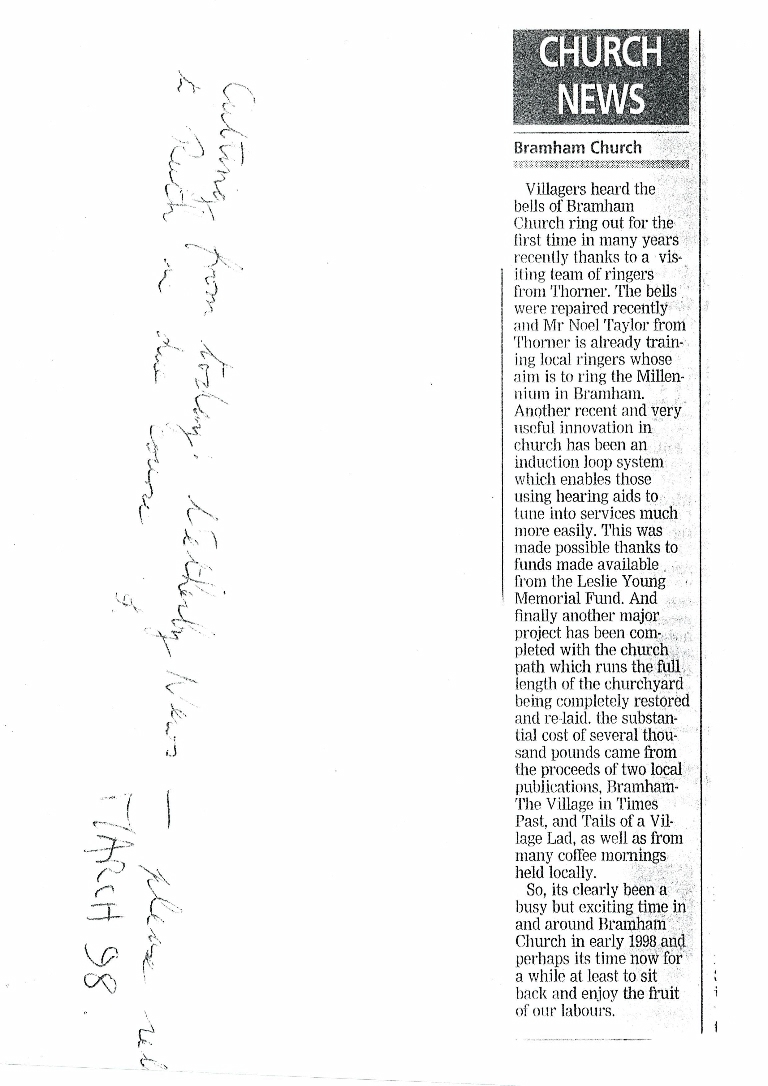 1. A Wetherby News report of March 1998 of the bells being rung again for the first time in many years following repair.