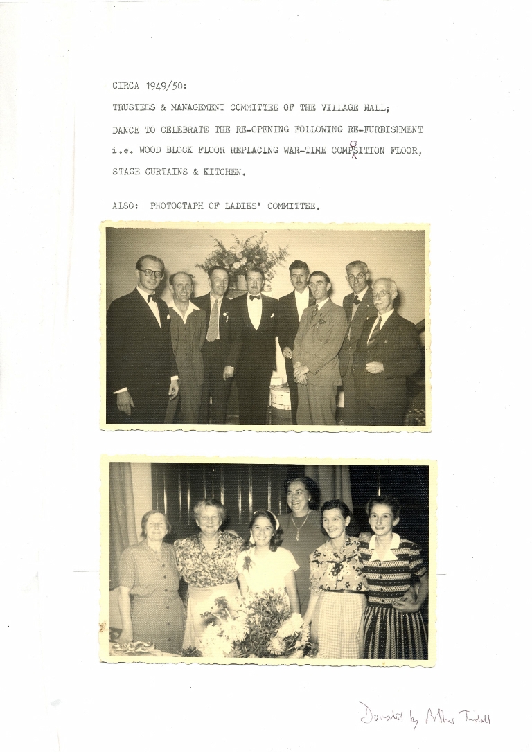 1. A photograph about 1949 - 50 of the trustees and management committee of the Village Hall following its refurbishment together with a photo of the ladies' committee.
