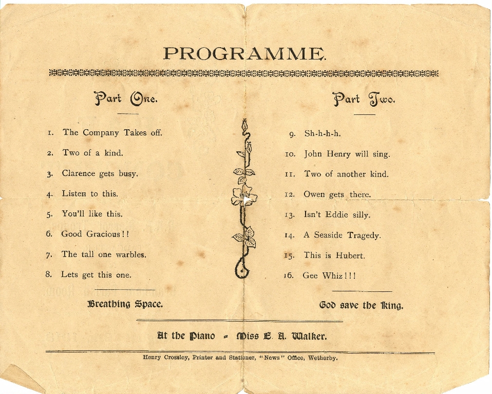 2. & 3. Programme for the R.A.F. Pierrot Group of Tadcaster given in Bramham Parish Room on August 9th, 1918.