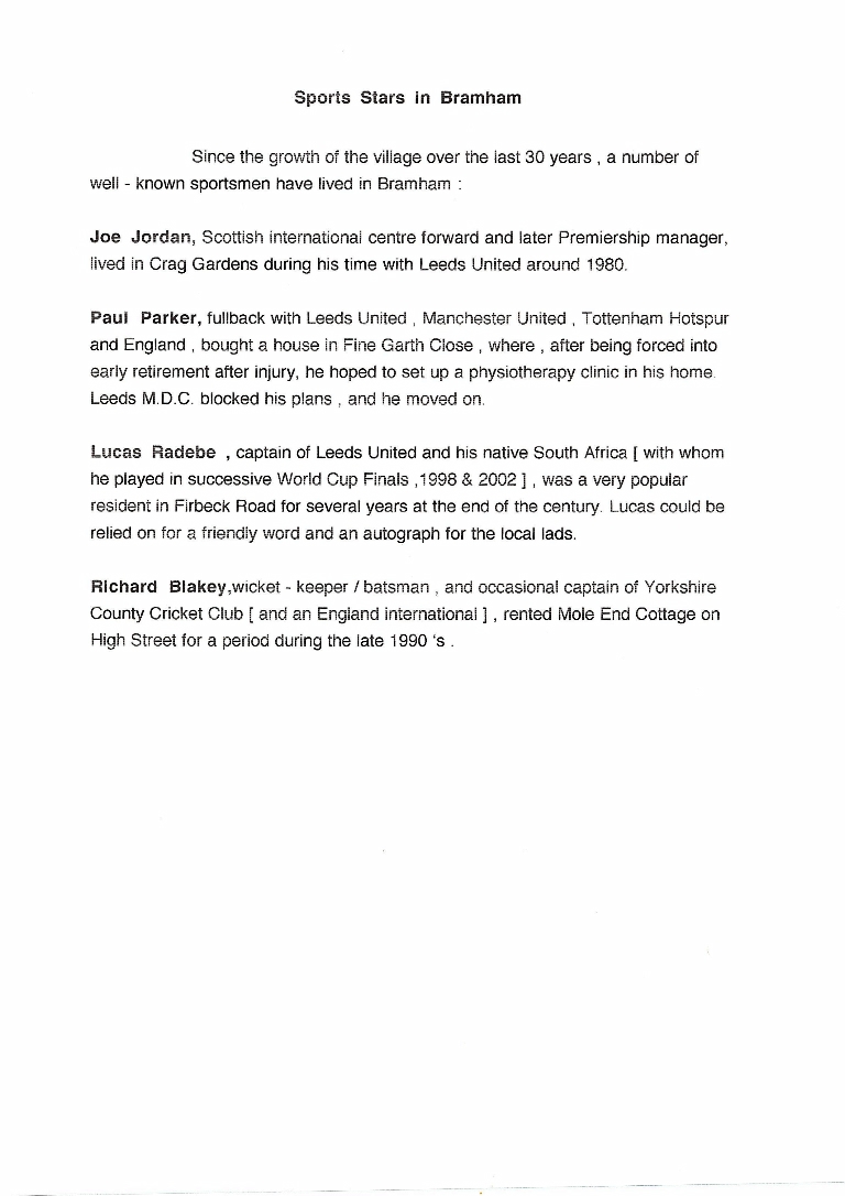 1. A list of well known sportsmen who lived in Bramham in the latter part of the 20th century