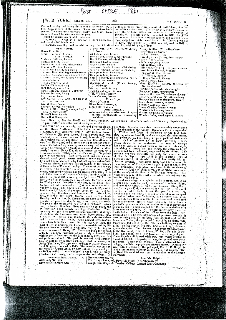 2. & 3. Pages 206 and 207 of the 1861 Post Office Directory with information on Bramham