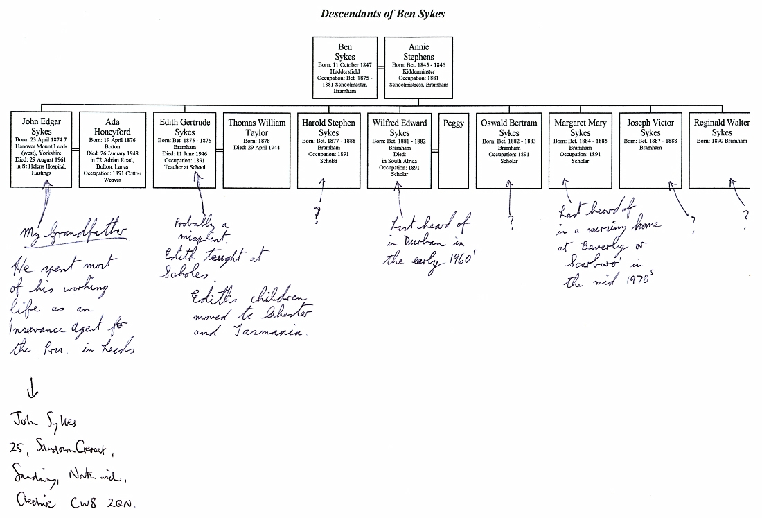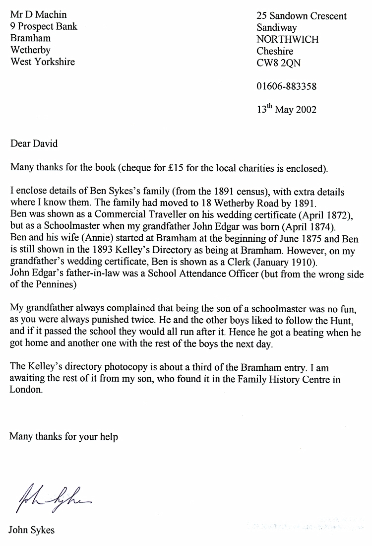 10. May 2002 letter from John Sykes to David Machin about Sykes family history.
