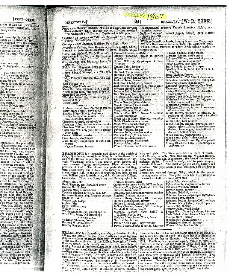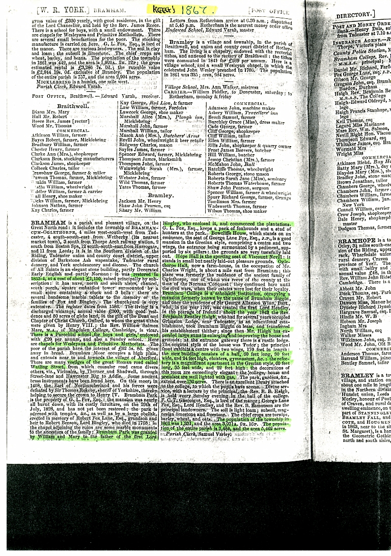 1. & 2. Pages 240 & 241 of the 1867 Directory covering the entry for Bramham