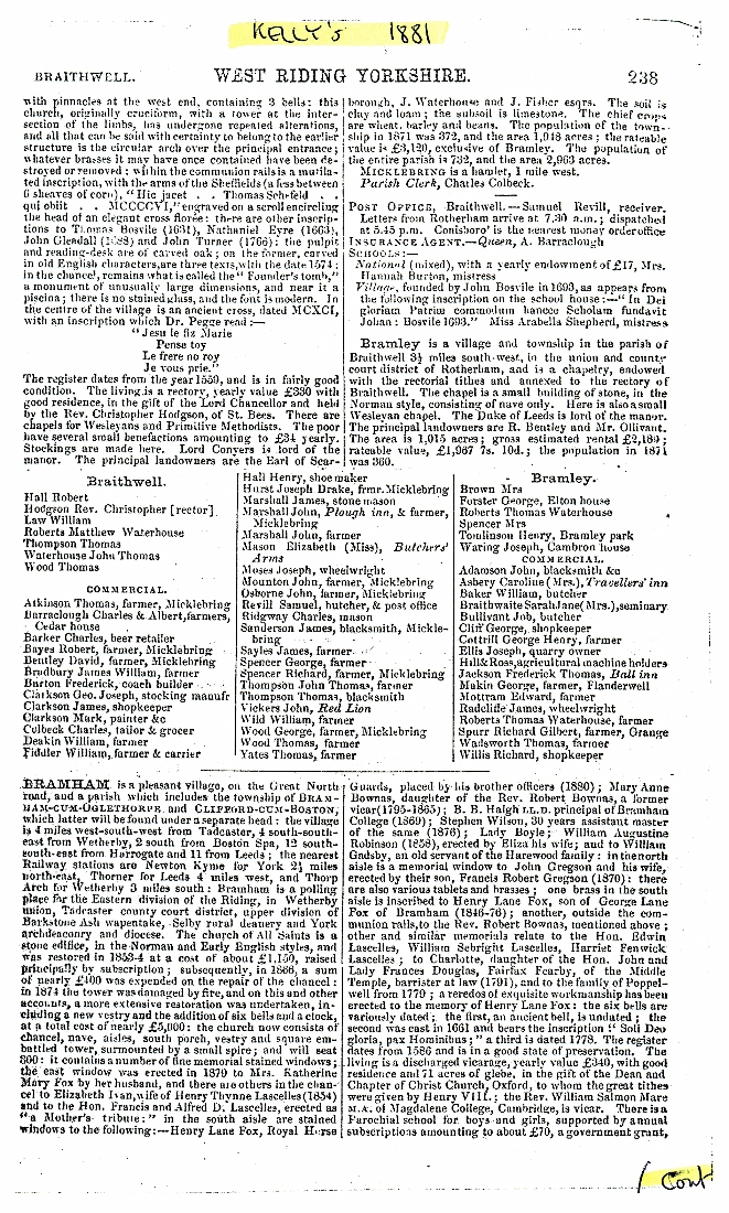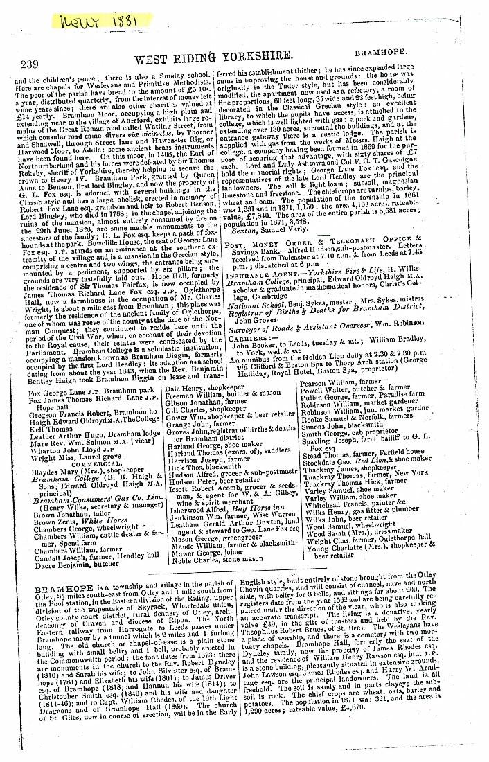 3. & 4. Pages 238 & 239 of the 1881 Directory covering the entry for Bramham.