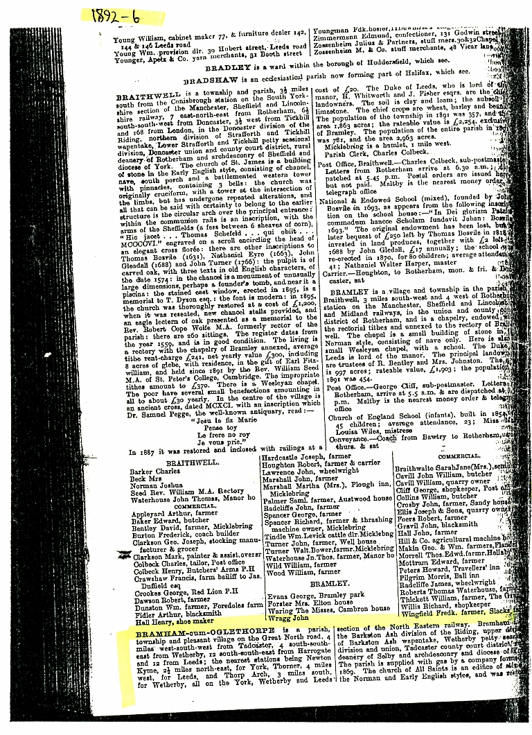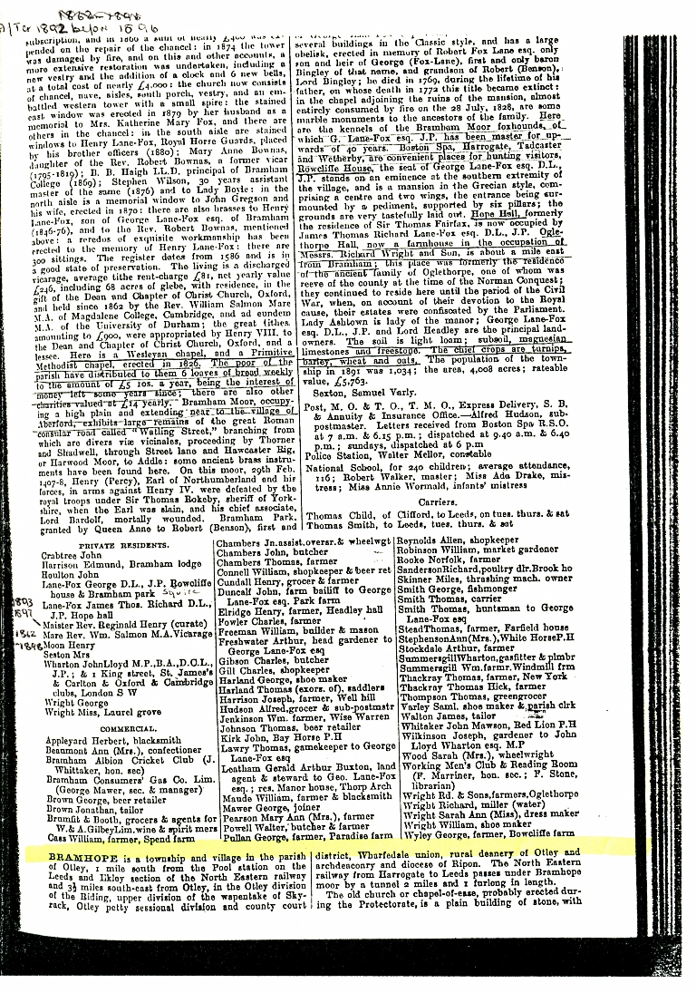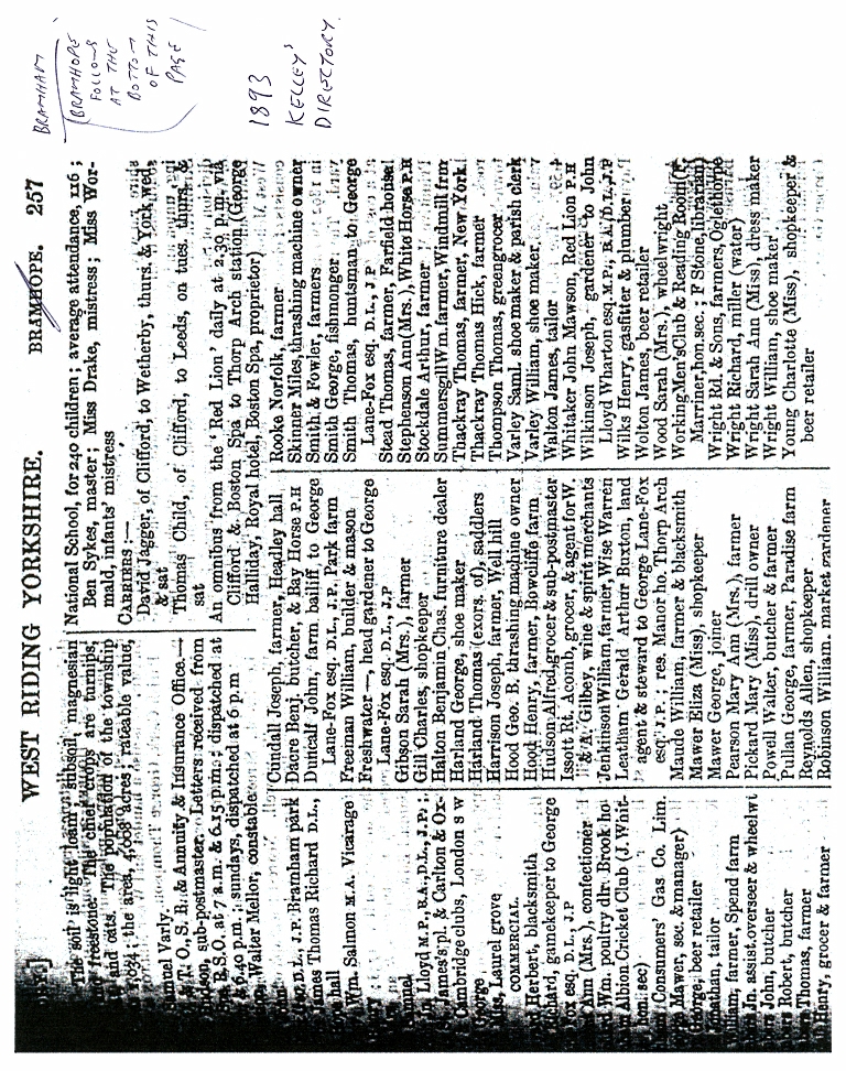 9. Page 257 0f the 1893 Directory covering the part of the entry for Bramham showing Private Residents and Commercial activities.