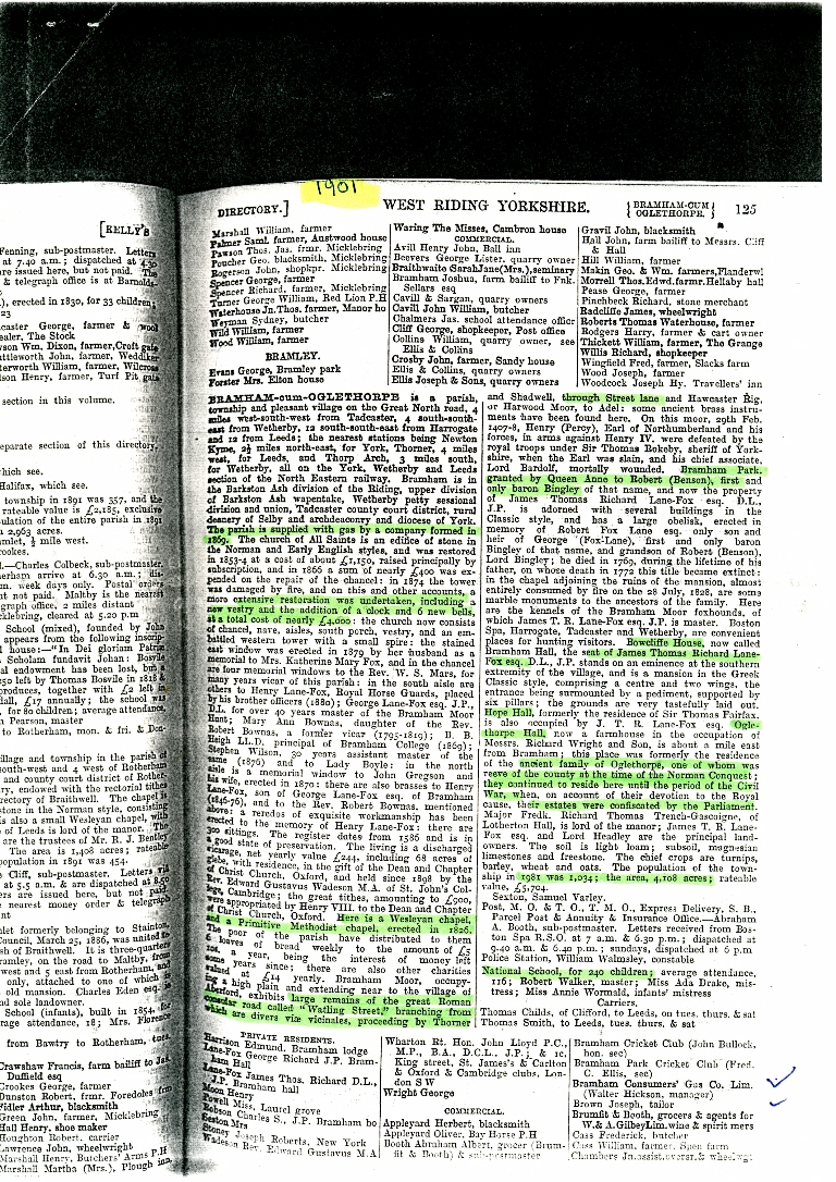 7. & 8. Pages 125 & 126 of the 1901 Directory covering the entry for Bramham