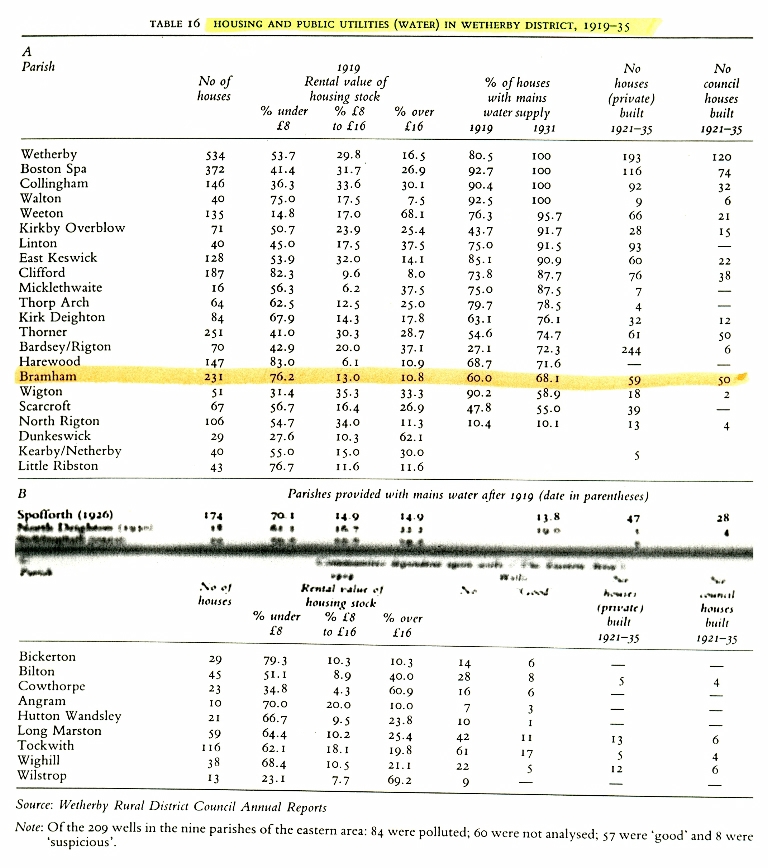 1. The statistics of housing and public utilities (Water) for Wetherby and all the villages in the Wetherby District, in the period 1919-1935, taken from Wetherby Rural District Council annual reports