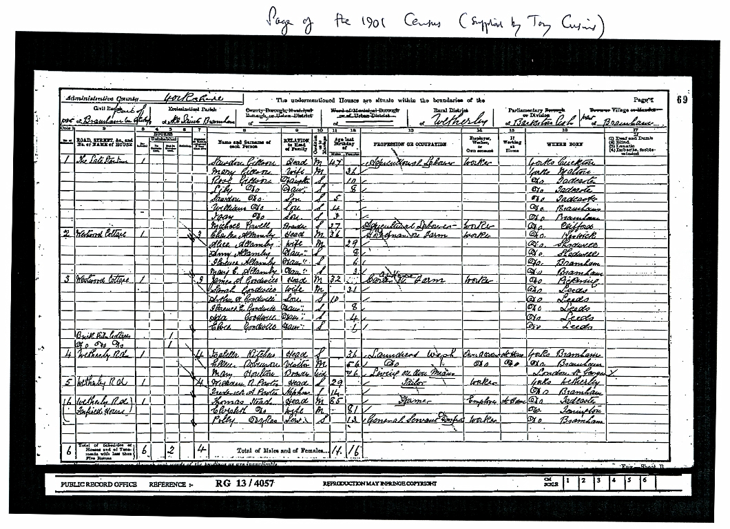 1. A page of the 1901 Census including cottages on Wetherby Road.