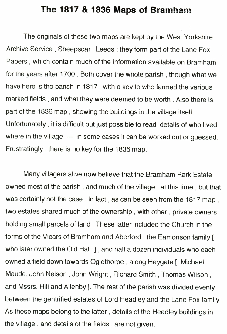 1. & 2. A two page introduction explaining that the 1817 and 1836 maps are kept by West Yorkshire Archive Service with a broad description of how the ownership of the land in the parish was split.
