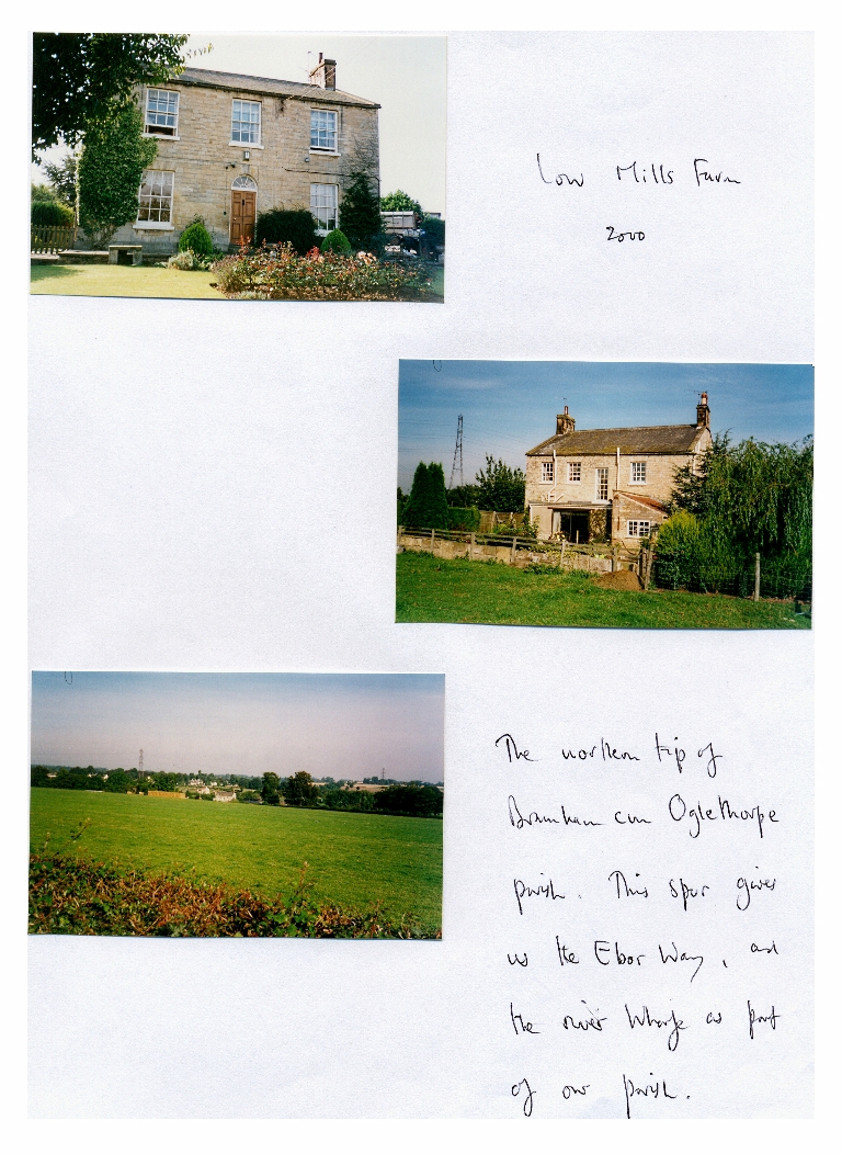 3. 3 photos dated 2000 - two showing front and rear views of the farmhouse and one of the northern extremity of Bramham parish.