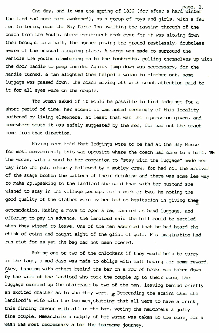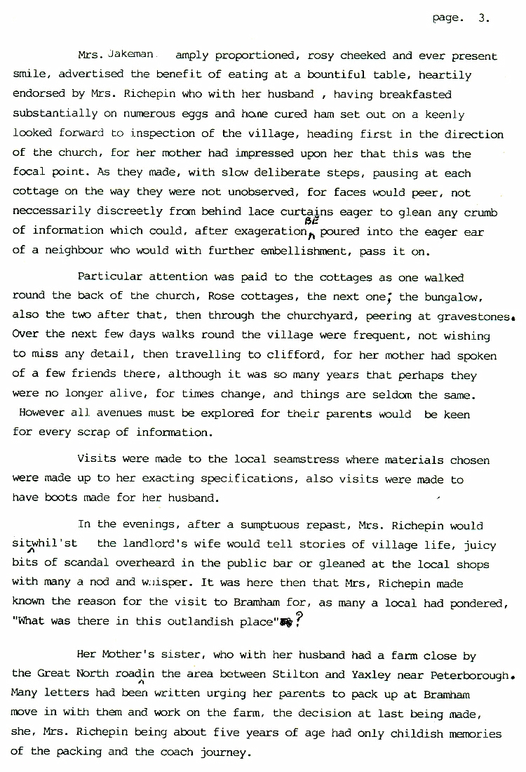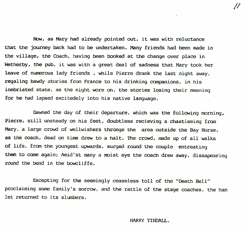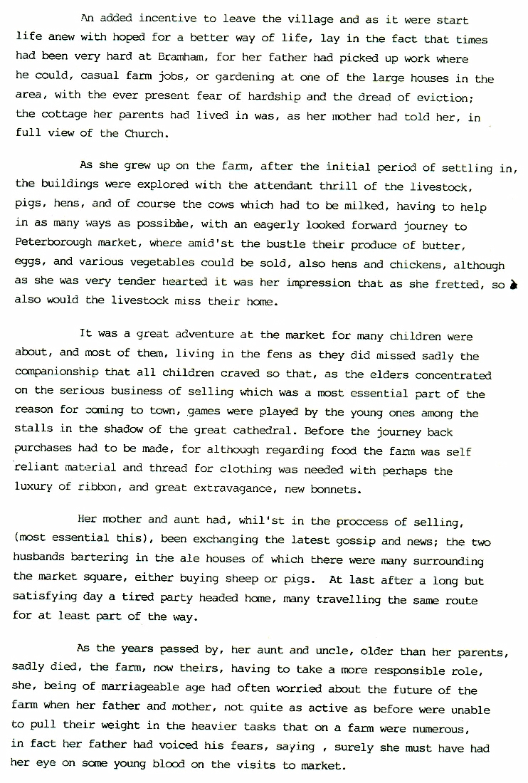 1. -12. A Brief Awakening After a brief introduction to the village of Bramham as it emerged over the last two millennia, this develops into the story of a lady visiting Bramham in 1832. Born and bred in Bramham she had left earlier in the century to live on a farm in Northamptonshire where she met and married a French prisoner of war. It illustrates what life was like for ordinary folk in the first half of the nineteenth century.