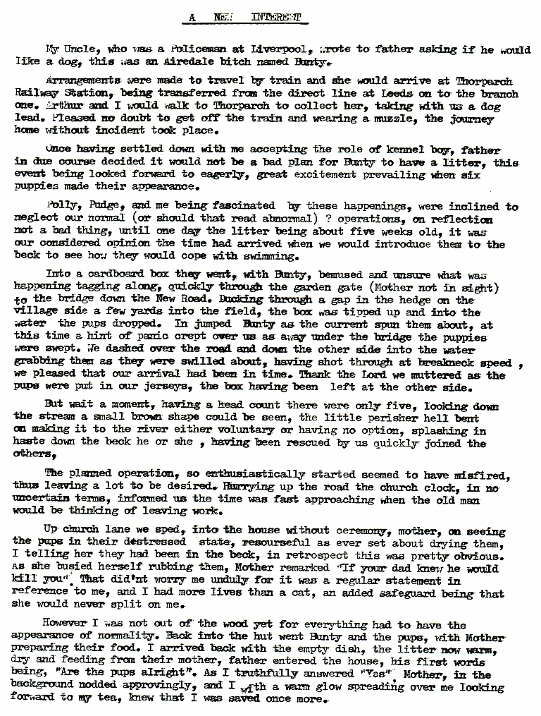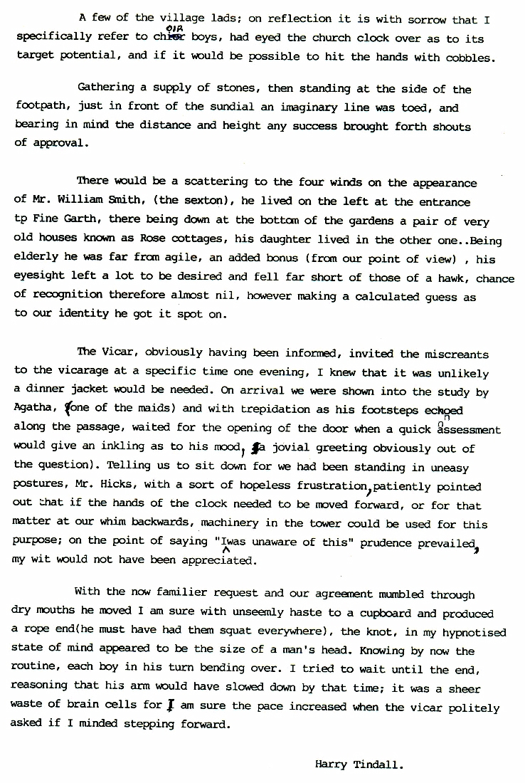 13. & 14. A New Interest A couple of tales about the mischief that Harry and his pals got up to as lads. Firstly teaching a litter of Airedale puppies to swim and then the joys of, and subsequent retribution for, accurate target practice with stones on the church clock.